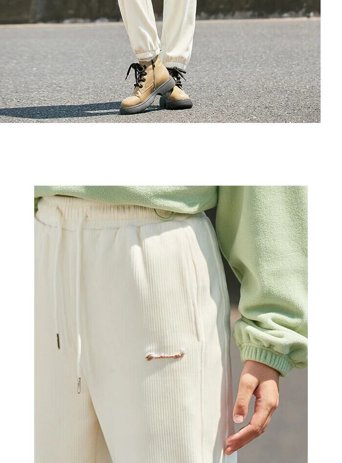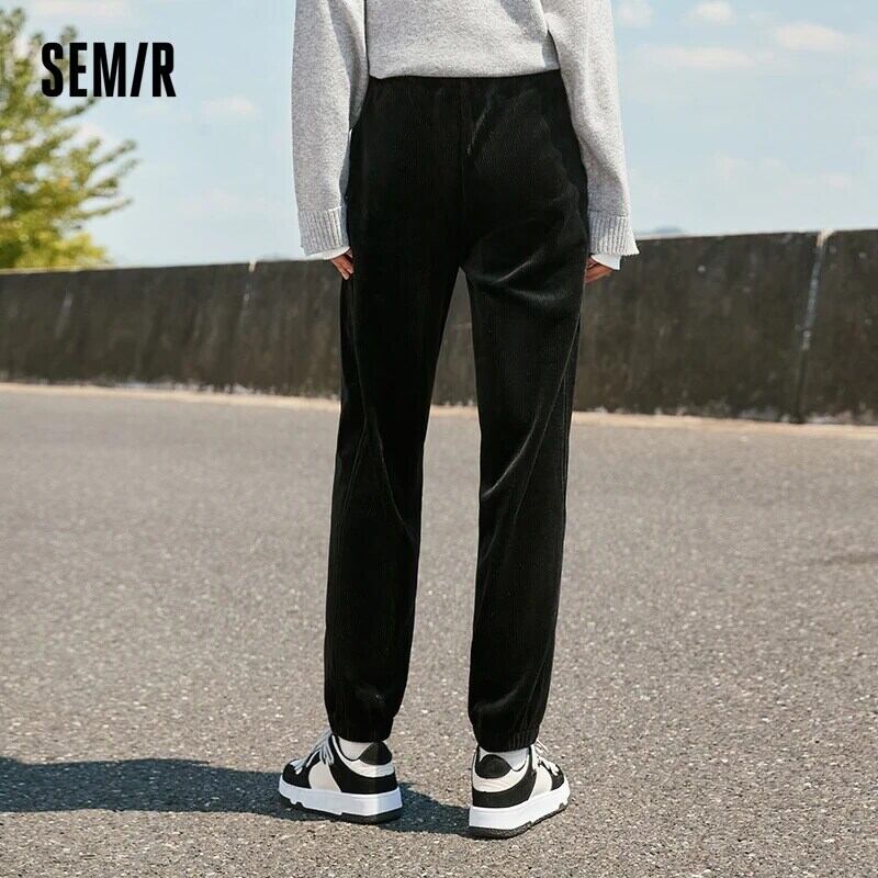 送料無料 Semir パンツ女性コーデュロイスウェットパンツレトロ 2023 冬刺繍ルーズ巾着レギンスズボン レッド ウィンター 冬物 AE121277778897419530