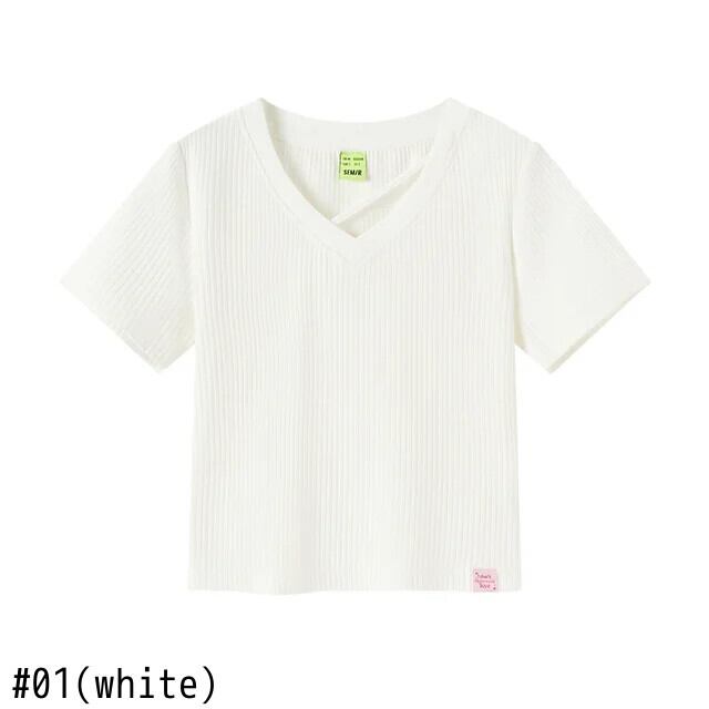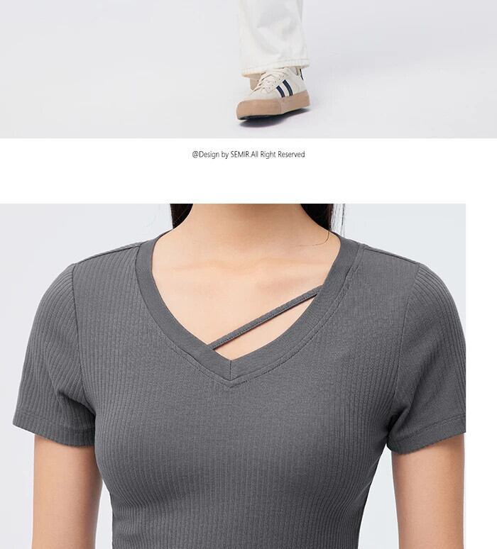 送料無料 Semir 半袖 Tシャツ女性ショートプルオーバーシンプルな気質 2023 夏 V ネックタイトニット ハーフスリーブ サマー 夏物 Vネック AE1212777735569480629