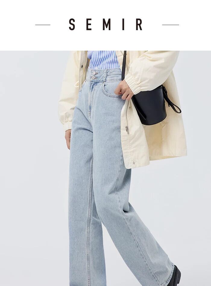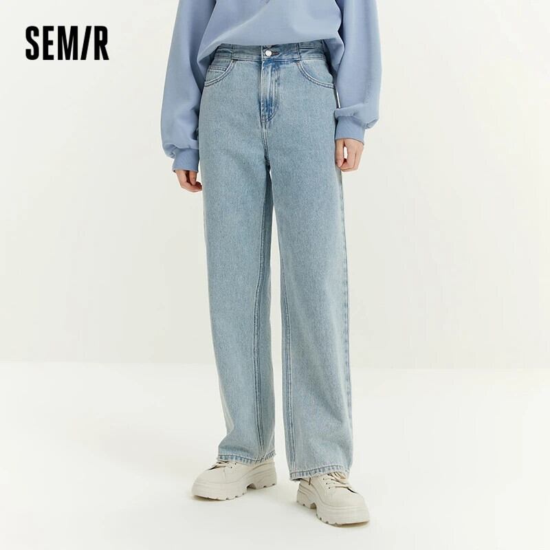 送料無料 Semir ジーンズ女性綿ウエストワイドレッグパンツ長さシンプルで多用途 2023 春パンツ コットン スプリング 春物 ワイドパンツ AE12127777987443334