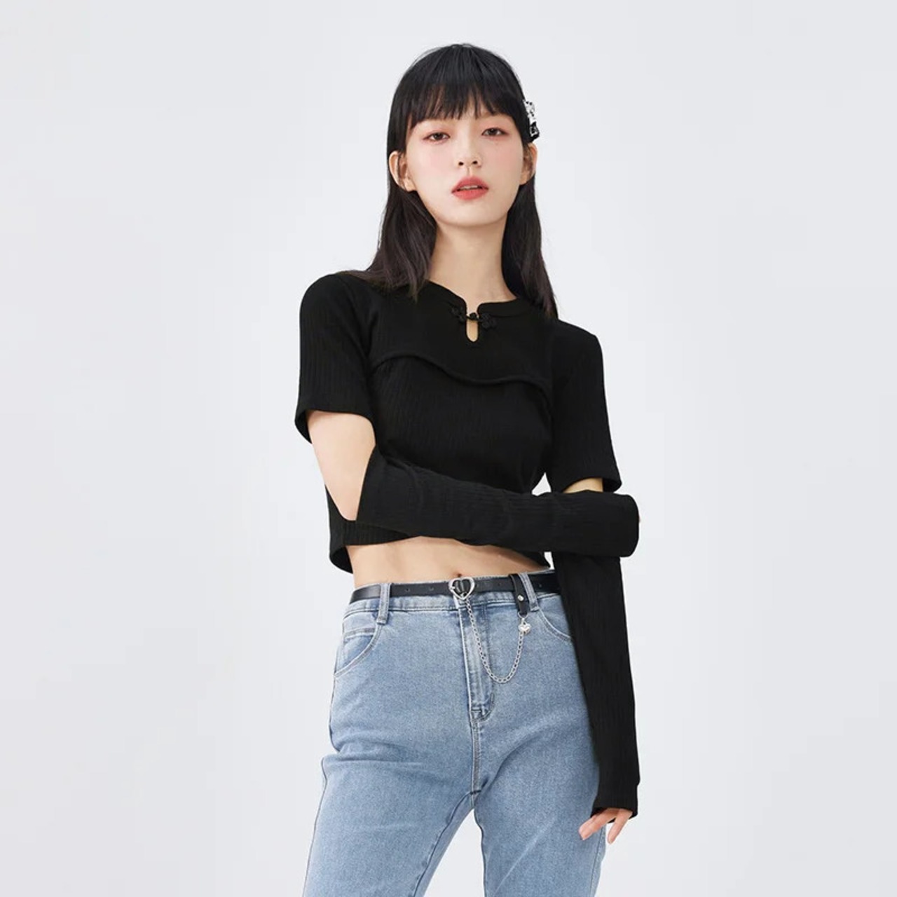 送料無料 Semir Tシャツ女性ショート中空 2022 春スリムボタン Tシャツ無地甘いニッチ 大人ガーリー スウィート キュート カジュアル スプリング 春物 ソリッドカラー AE1212777787272517160