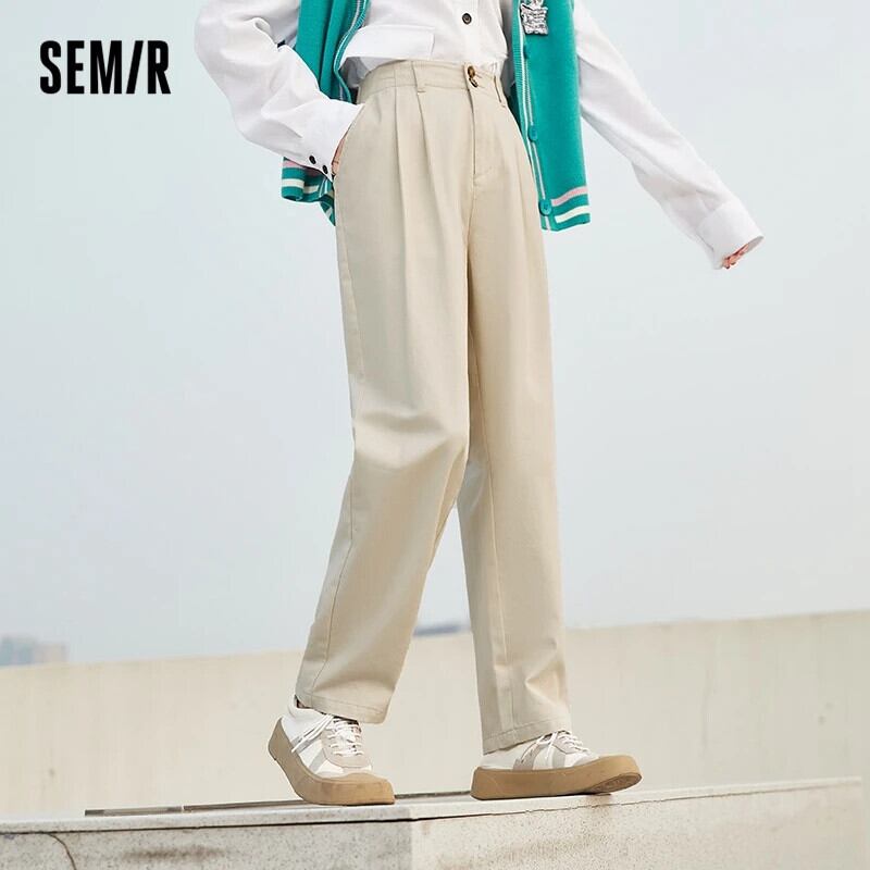 送料無料 Semir パンツ女性スリムパンツ 2022 春オールマッチベーシックテーパードパンツ白ストレートパンツ ホワイト レッド スプリング 春物 AE1212777768900332680