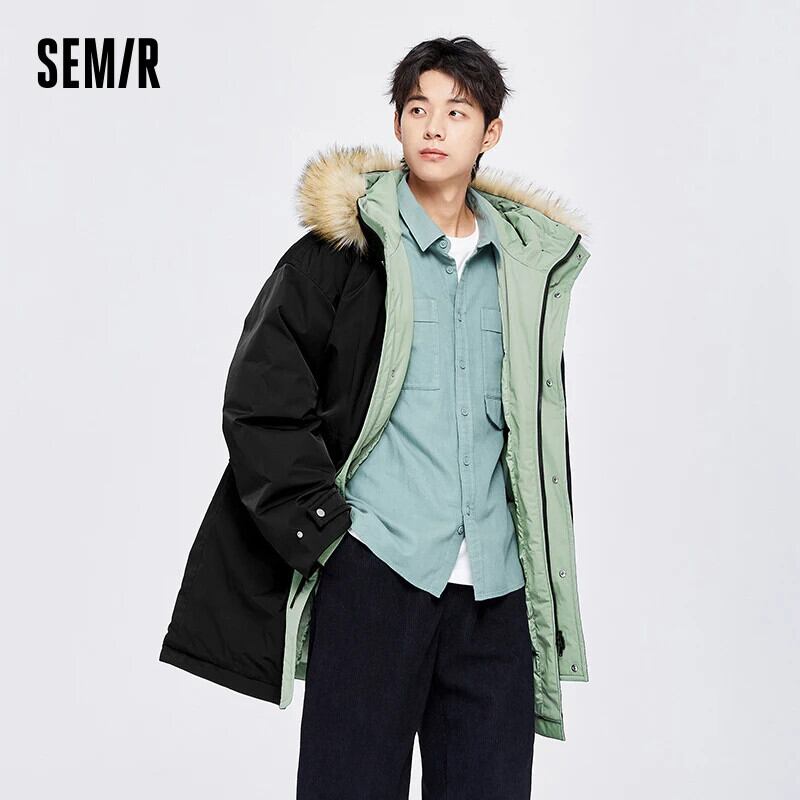 送料無料 Semir ダウンジャケット男性冬ルースファー襟 Comtable 暖かいパーソナライズされたロングフード付きジャケット ウィンター 冬物 AE1212777765718395394