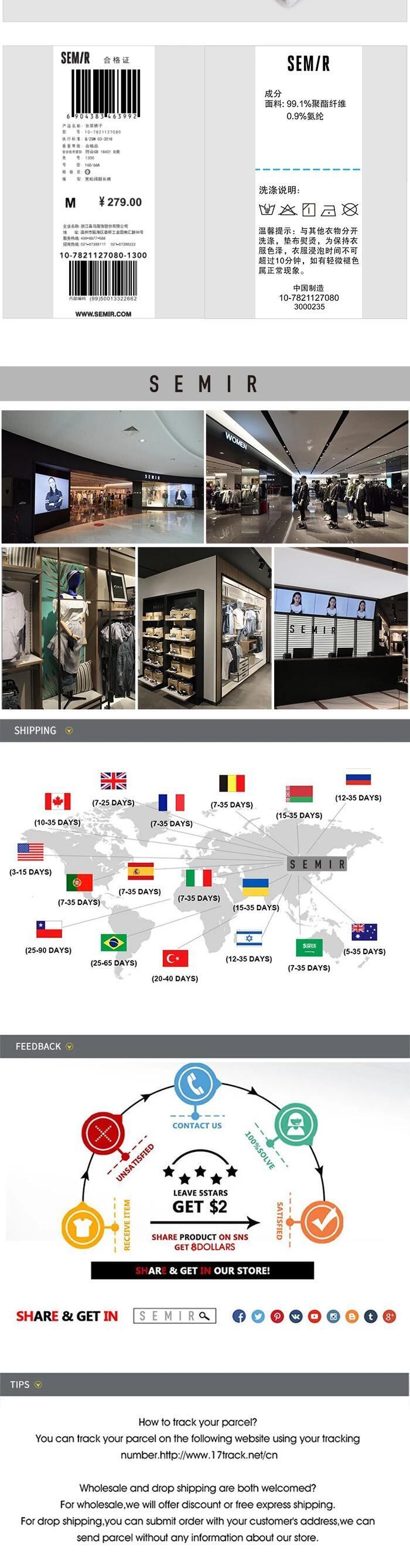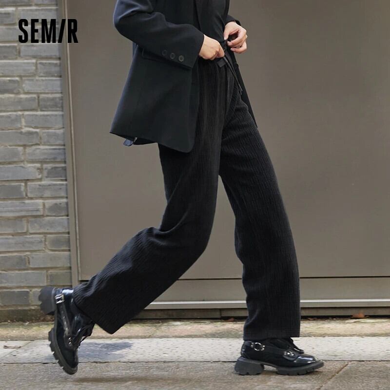 送料無料 Semir パンツ女性ジャカード弾性ウエストワイドレッグルーズシェニールパンツ脚長ストレートレッグパンツ エラスティック 伸縮 AE1212777751852981975