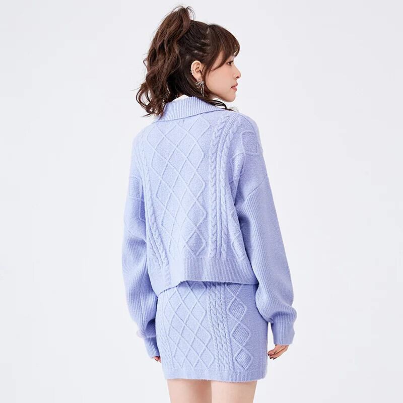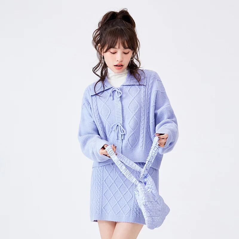 送料無料 Semir ニットスーツ女性ラペルセーターケーブルスカート 2023 冬の弓ソリッドカラー 2 点セット リボン ウィンター 冬物 AE1212777744769868245
