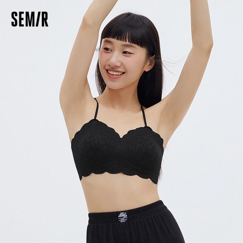 送料無料 Semir 女性ブラジャー女の子小胸ギャザー夏通気性チューブトップレースクロス美しいバックスポーツブラ女性 レッド サマー 夏物 AE1212777722654074584