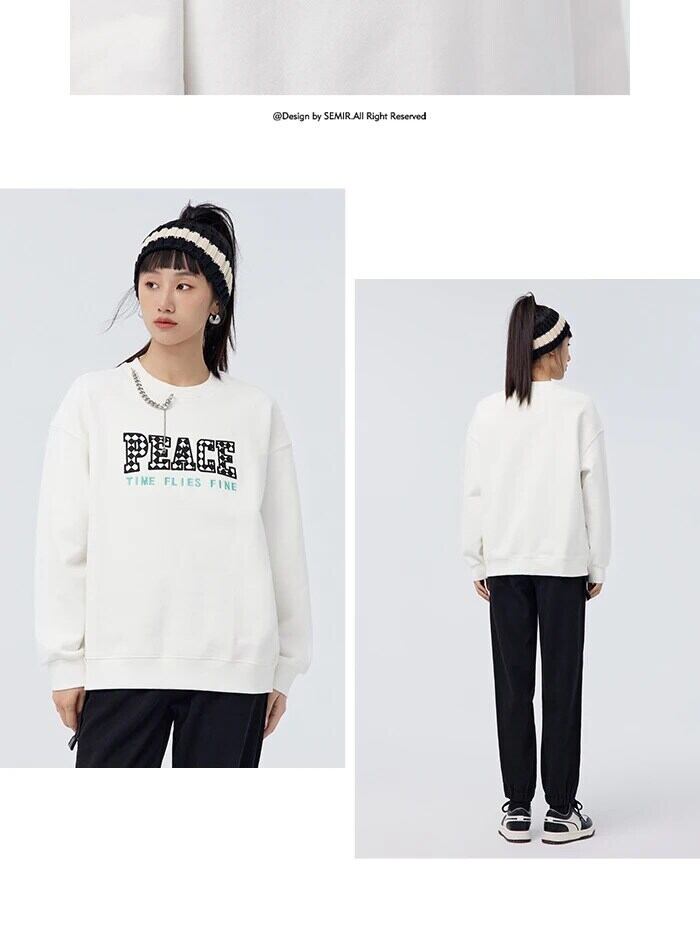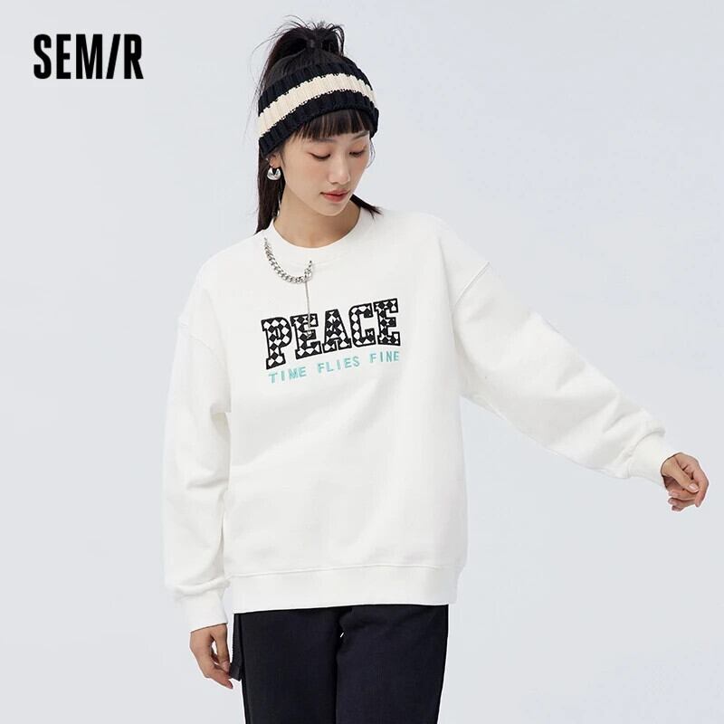 送料無料 Semir パーカー女性可能クール春緩いパーソナライズされたフライドストリートフリースラウンドネックボトムスウェットシャツ可能 スプリング 春物 Oネック AE1212777784911043499