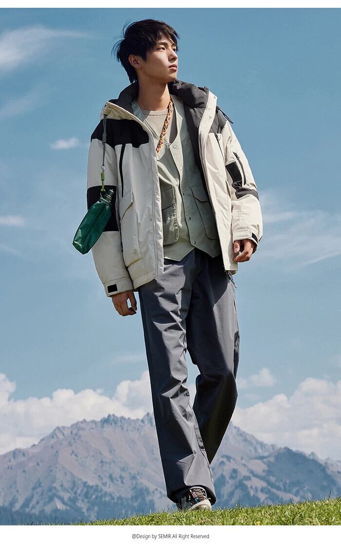 送料無料 Semir ダウンジャケット男性 2023 冬 3 プルーフコントラストカラー屋外暖かいトレンディなフード付きジャケット ウィンター 冬物 AE1212777761303617527