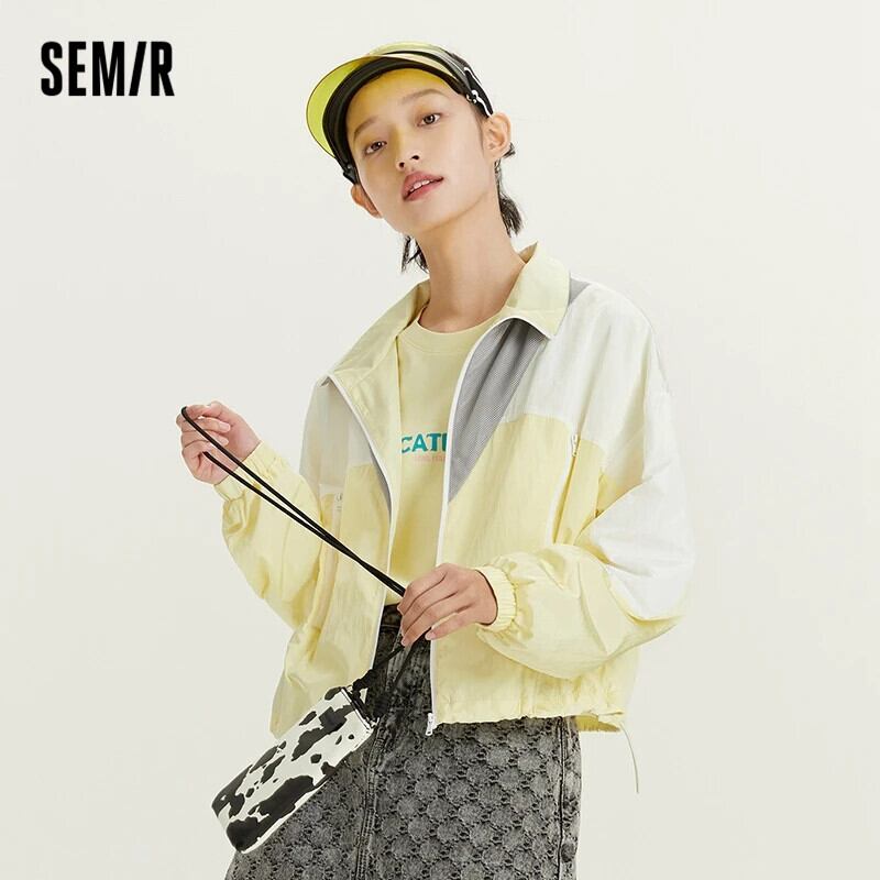 送料無料 セミール女性コートショートパネルメッシュモックネックルーズ春カラーコントラストジャケット 2023 魅力的な気質 スプリング 春物 AE1212777765298344781