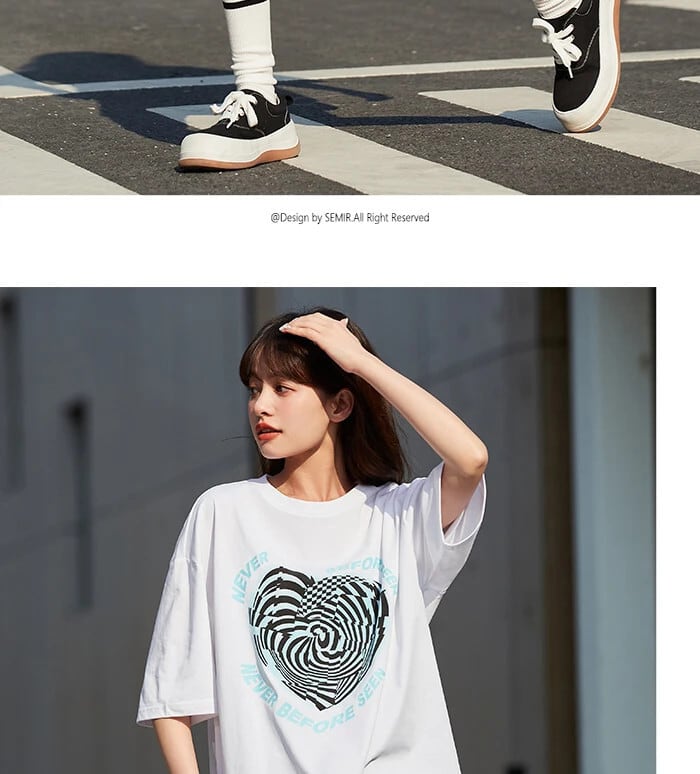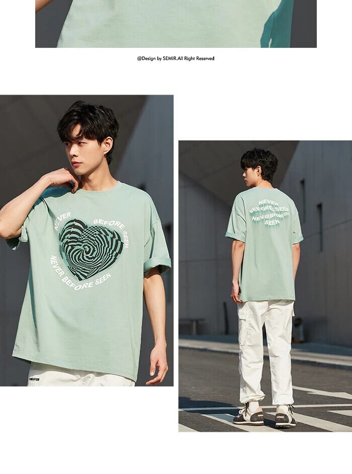 送料無料 Semir 半袖 Tシャツ男性立体愛プリント 2022 夏吸湿性カップルニットトップイン ショート ハーフスリーブ サマー 夏物 AE1212777746164521462