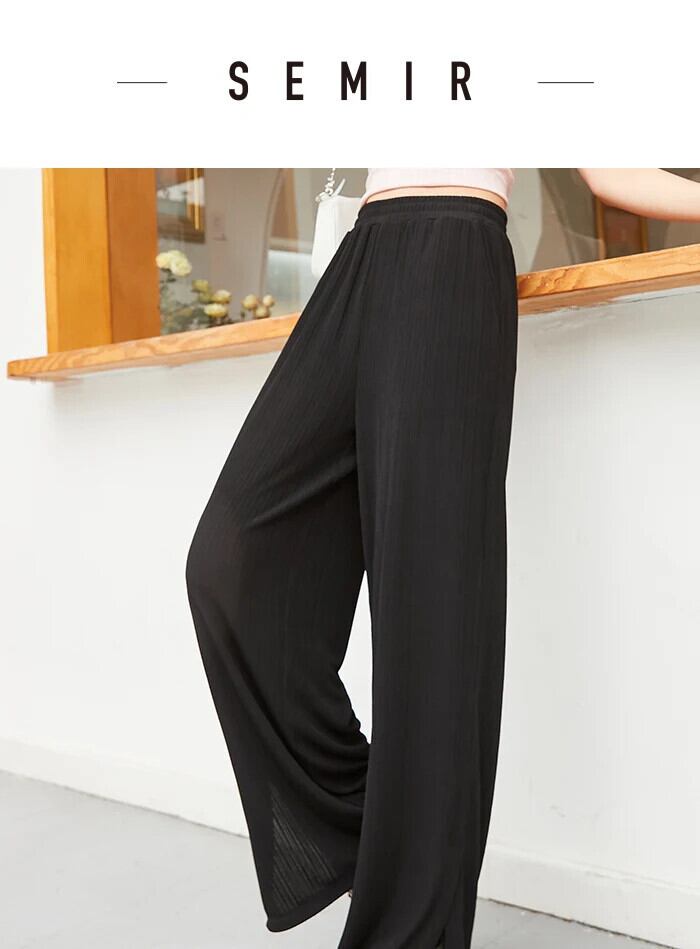 送料無料 SEMIR パンツ女性ブラックテクスチャニットパンツ 2022 夏ソリッドカラードレープモップワイドレッグパンツ怠惰な レッド サマー 夏物 AE1212777784279540156