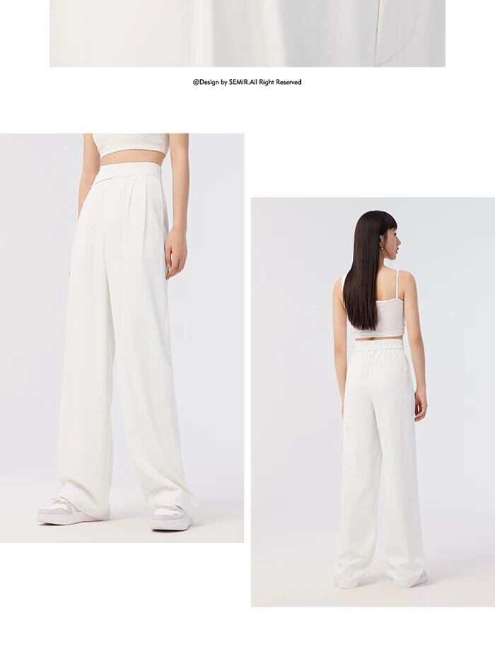 送料無料 Semir パンツ女性クールで扱いやすいスーツパンツ 2023 夏スタイルドレープウエストワイドレッグ通勤 サマー 夏物 ワイドパンツ AE1212777741671871616