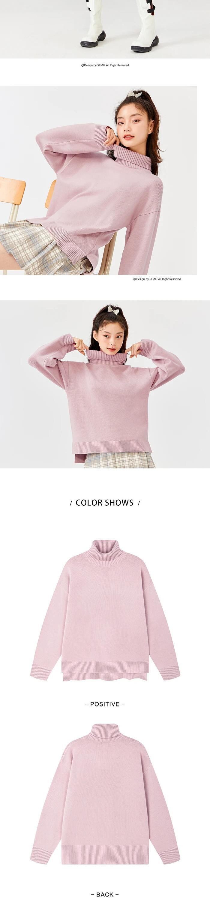 送料無料 Semir ニットセーター女性ハーフタートルカラーランタンスリーブ基本通勤 2023 冬ソリッドカラースリットルーズセーター ウィンター 冬物 AE121277775792156122