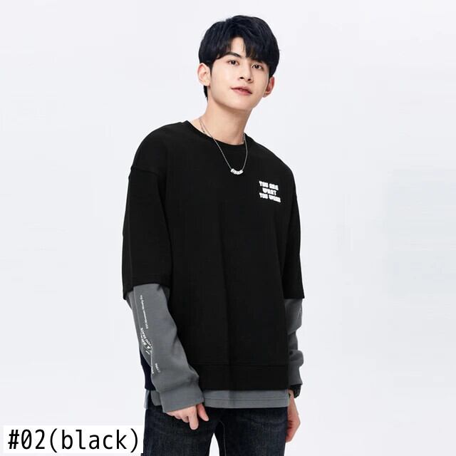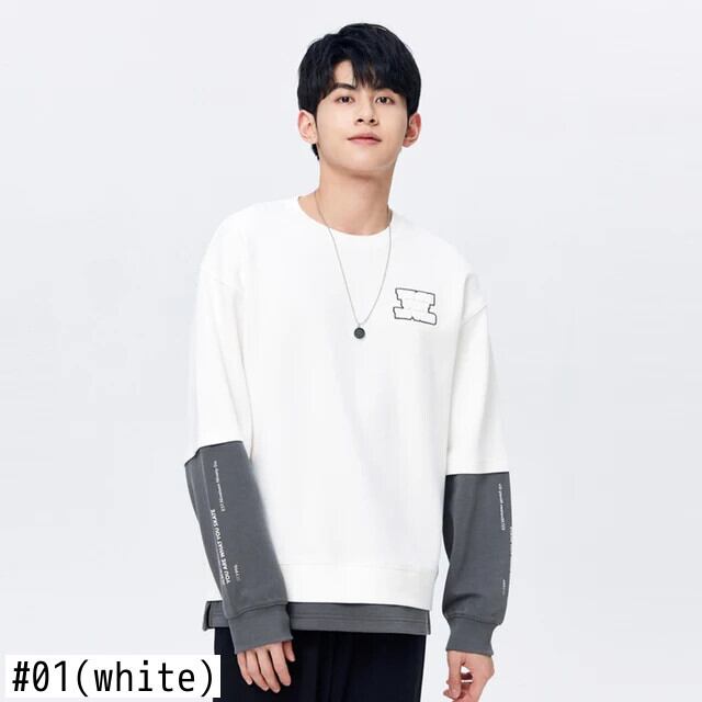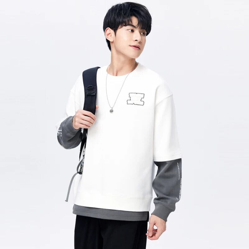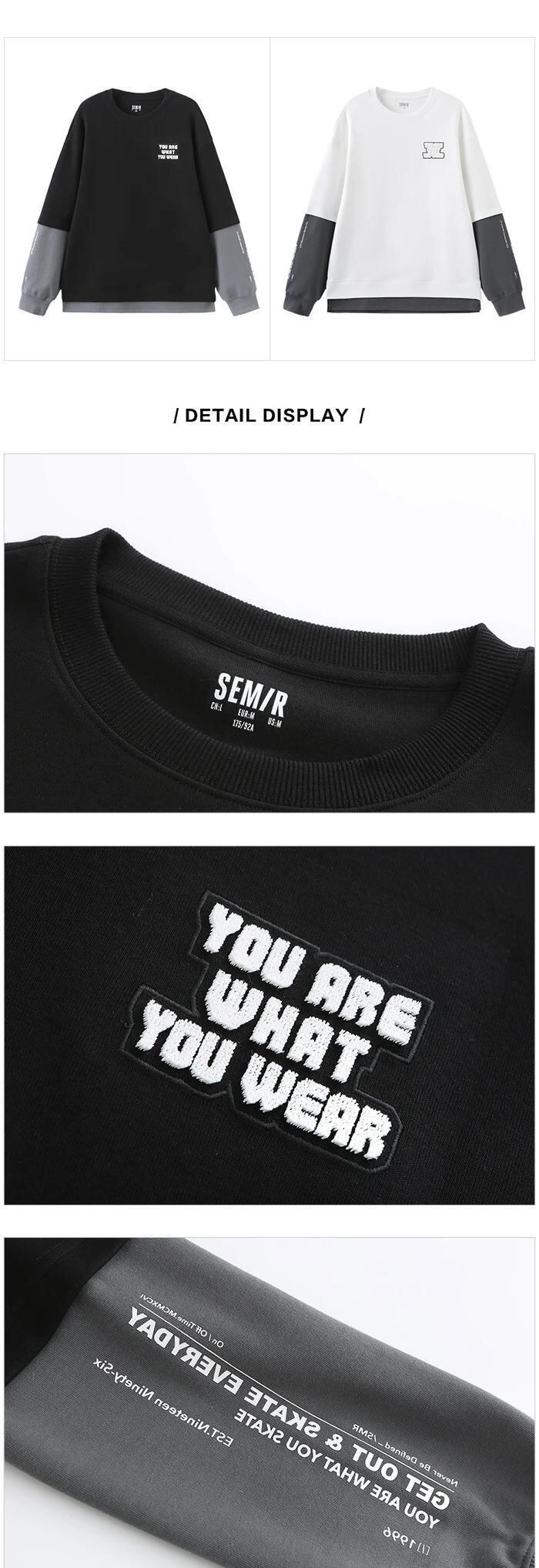 送料無料 Semir 男性トレーナー秋のカラーコントラストスプライシング偽二枚毎日通勤刺繍ルーズラウンドネックトップセーター オータム 秋物 Oネック AE1212777713571903212