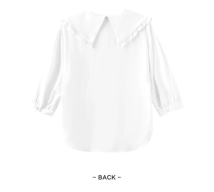 送料無料 Semir 女性シャツミドルスリーブシャツ秋イージーケア白優しい糸耳大きなラペル襟服シャツ ホワイト オータム 秋物 AE1212777723071390067