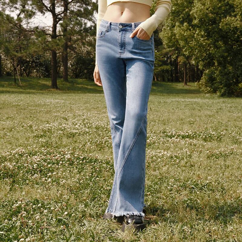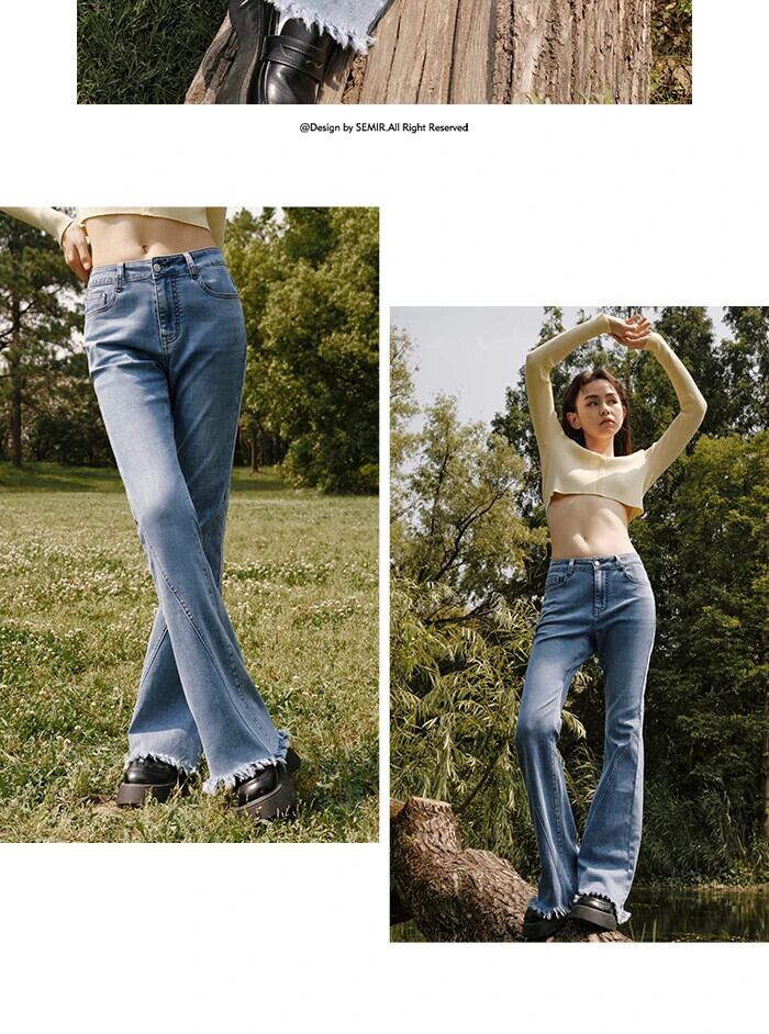 送料無料 Semir 2023 女性ジーンズ生エッジフレアパンツ香港スタイル秋スリムパンツトレンディなオールマッチジーンズ女性 レッド オータム 秋物 AE1212777786672380256