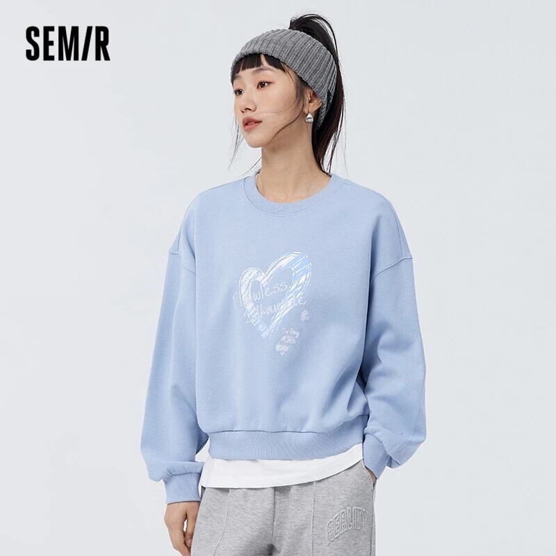 送料無料 Semir トレーナー女性ルーズレターソフトで甘い 2023 春の女性の気質秋ショルダー O ネックトップスタイル 大人ガーリー スウィート キュート カジュアル スプリング 春物 Oネック AE1212777791597866158