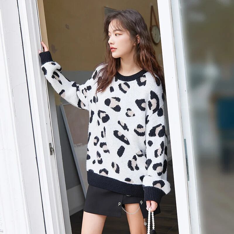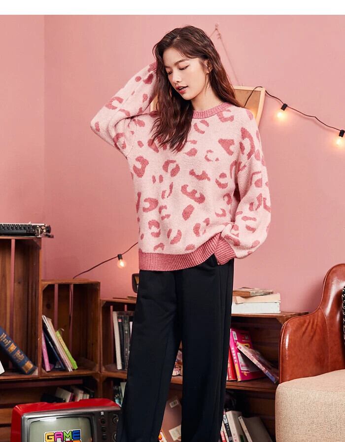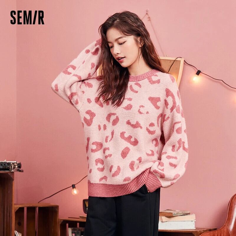 送料無料 Semir セーター女性ヒョウ柄オフショルダーベルベットセーターレトロスタイル 2022 冬ルーズスウィートセーター 大人ガーリー キュート カジュアル ウィンター 冬物 AE1212777770664201829