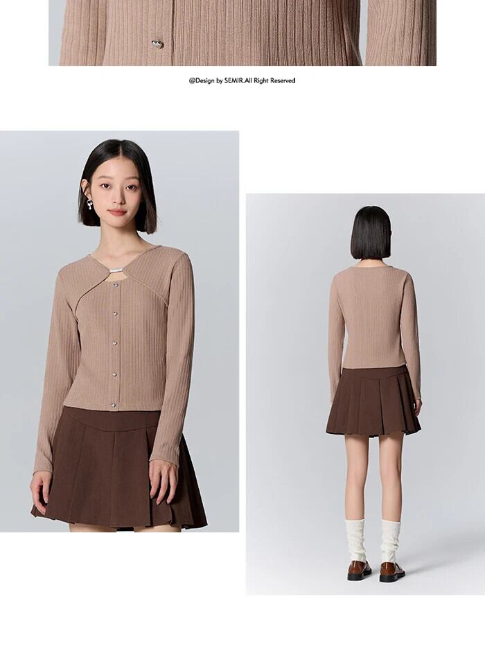 送料無料 Semir 長袖 Tシャツ女性ショート中空甘い 2023 冬タイトニットセーター ロング 大人ガーリー スウィート キュート カジュアル ウィンター 冬物 AE1212777786734192774