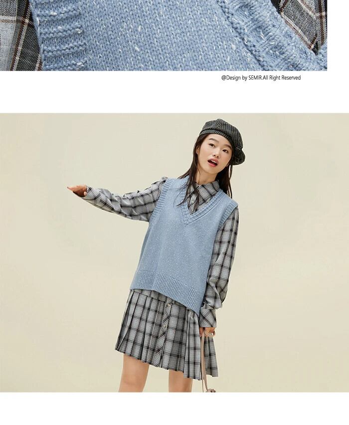 送料無料 Semir ドレス女性 V ネックベストレトロスタイルパターン 2023 冬のスーツ文学ツーピースドレス ウィンター 冬物 Vネック AE1212777786788255339