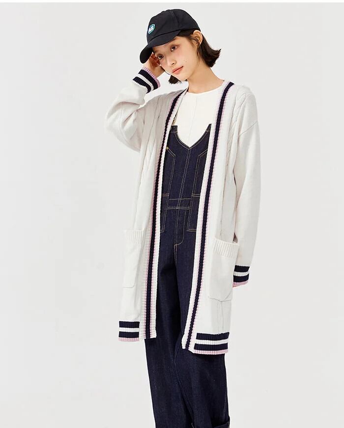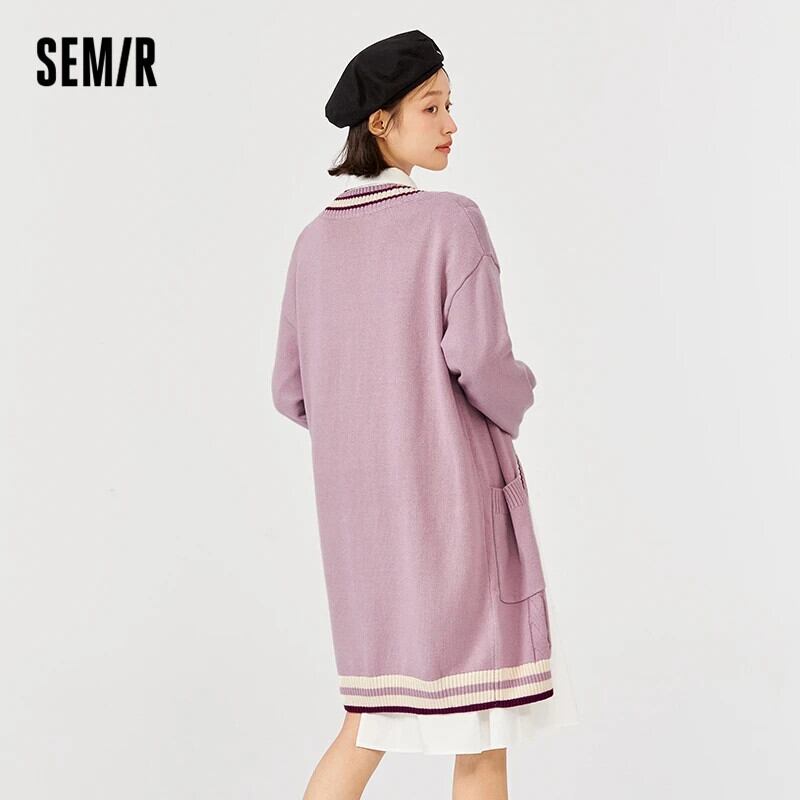 送料無料 Semir セーター女性ロングスタイル 2021 春と秋のルーズコートコントラストカラーカーディガン甘いセーター 大人ガーリー スウィート キュート カジュアル スプリング 春物 オータム 秋物 AE121277772948527574