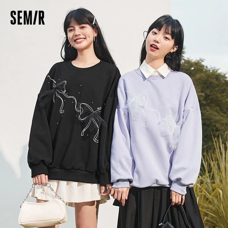 送料無料 Semir 女性ちょう結びスウェットシャツガーリー感ぬいぐるみサンシルク蓄熱トップ 2022 冬パーカー リボン ウィンター 冬物 AE1212777726989973711