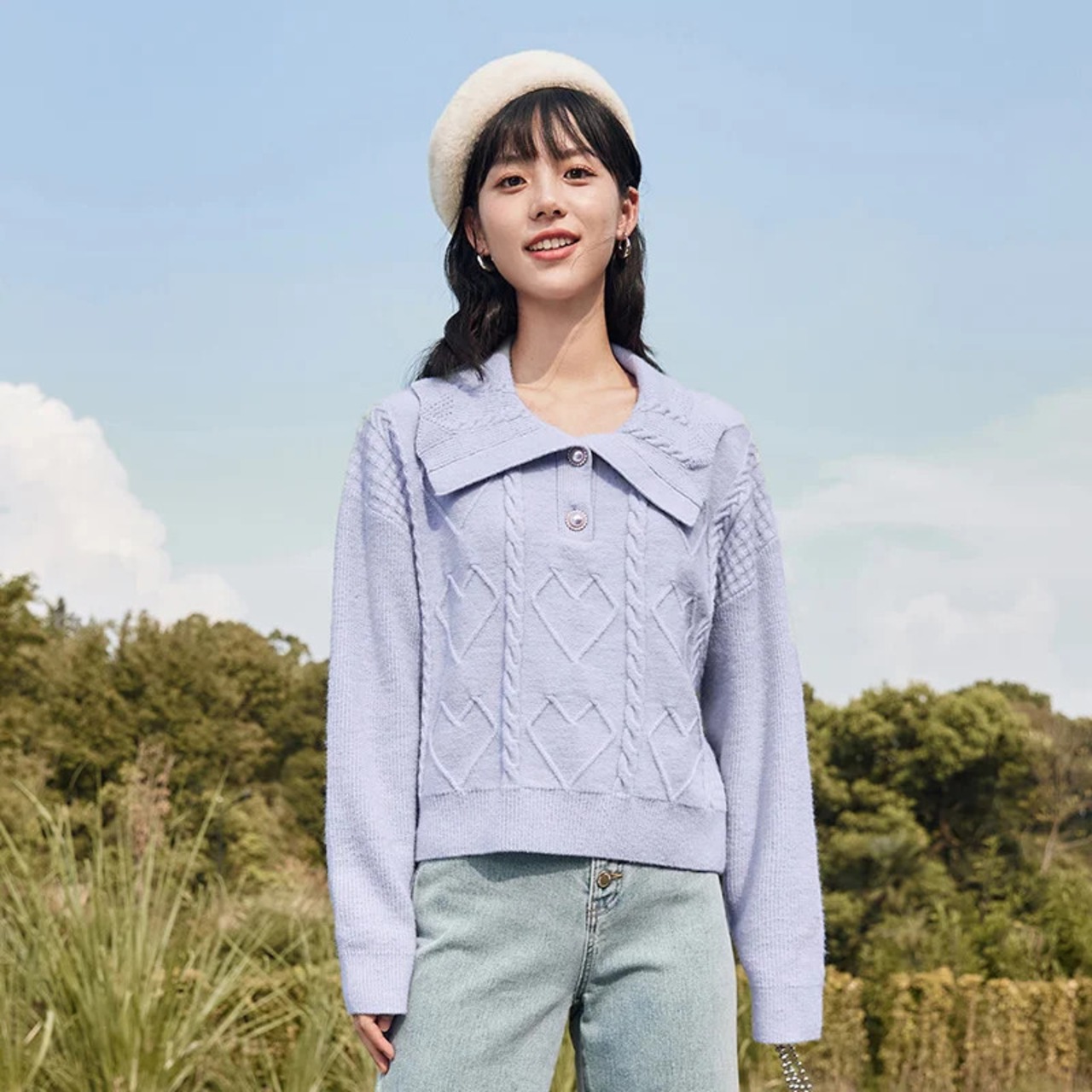 送料無料 Semir セーター女性ショートスタイルガーリッシュビッグラペル 2023 冬年クリスマススタイルルーズトップ ウィンター 冬物 AE1212777771888522975