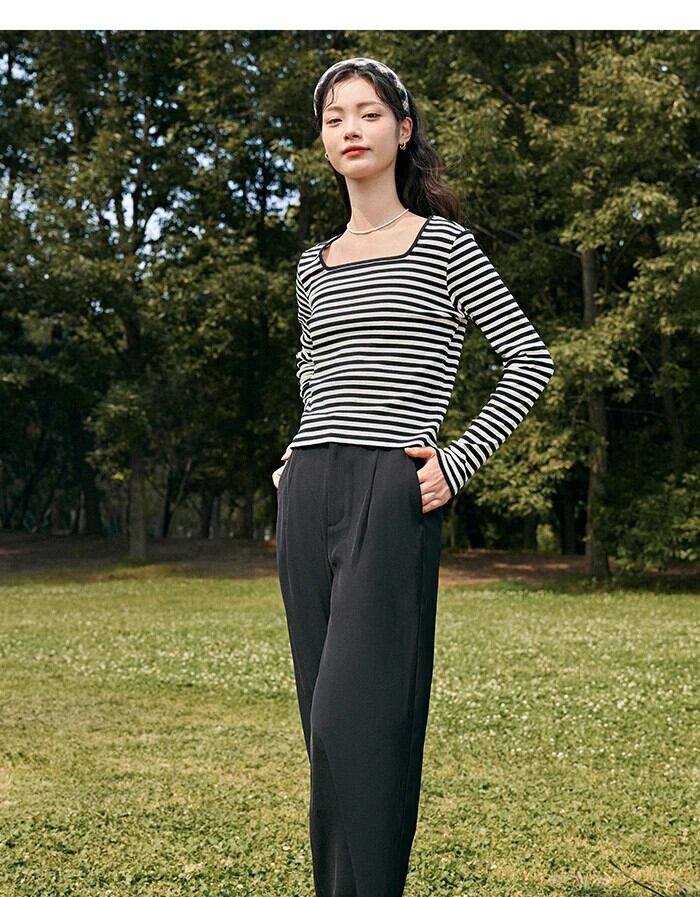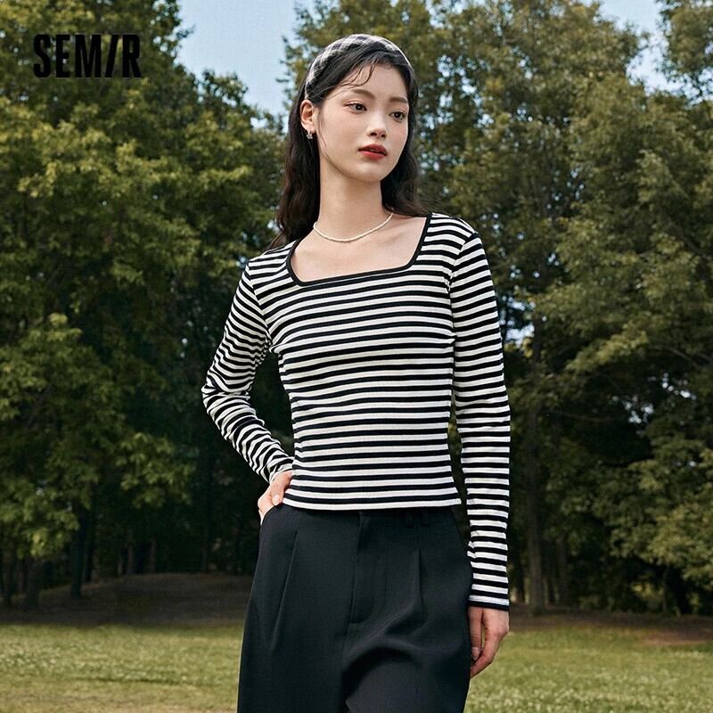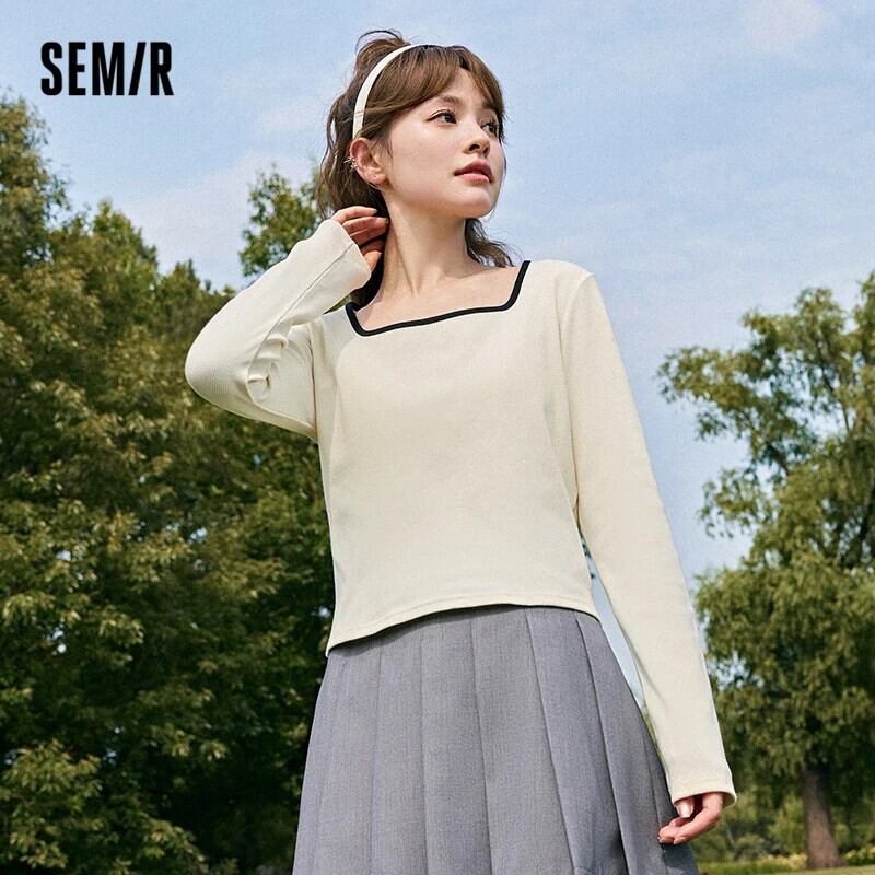 送料無料 Semir 2023 女性 Tシャツ長袖スクエアカラーシンプルな秋タイトフィットセーターオールマッチ Tシャツ女性 ロング オータム 秋物 スクウェア AE1212777783080246189