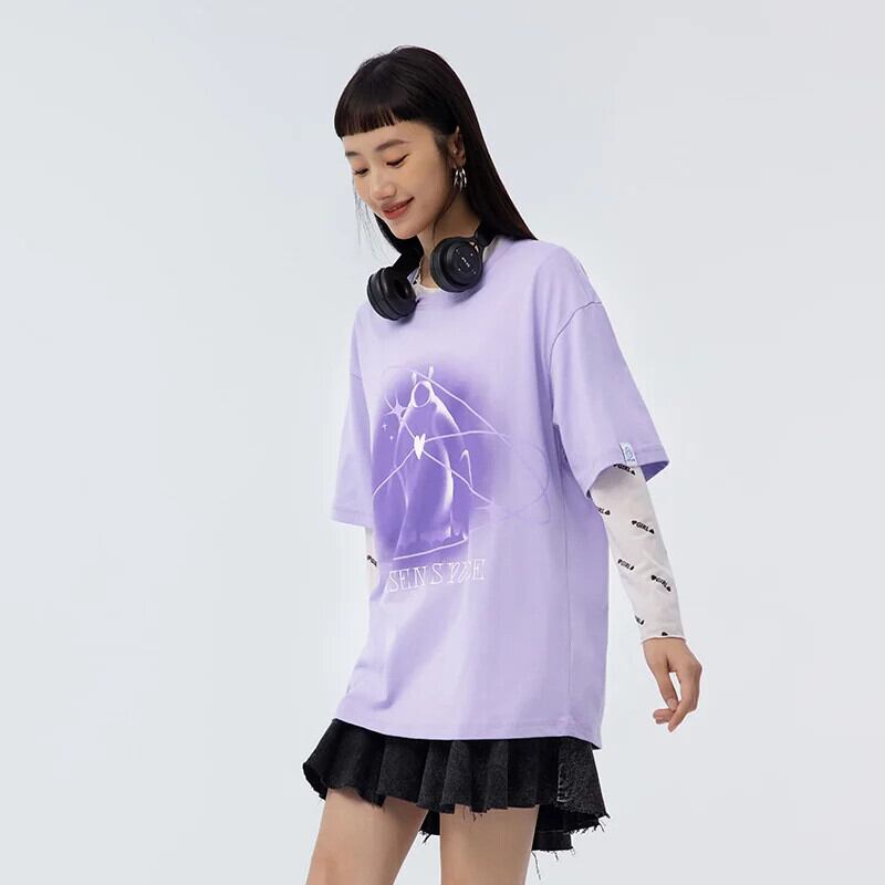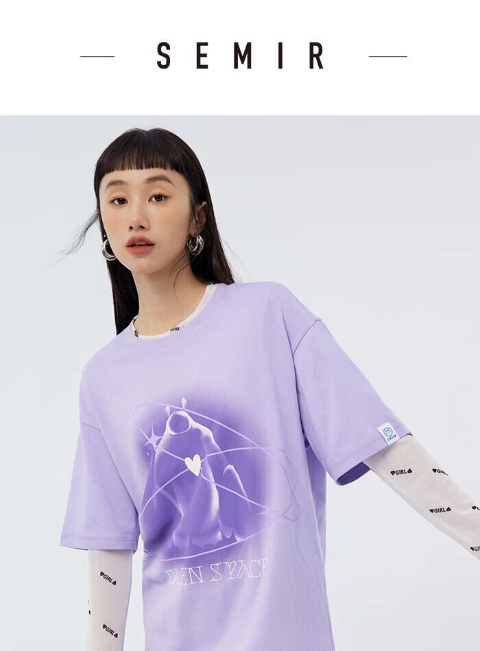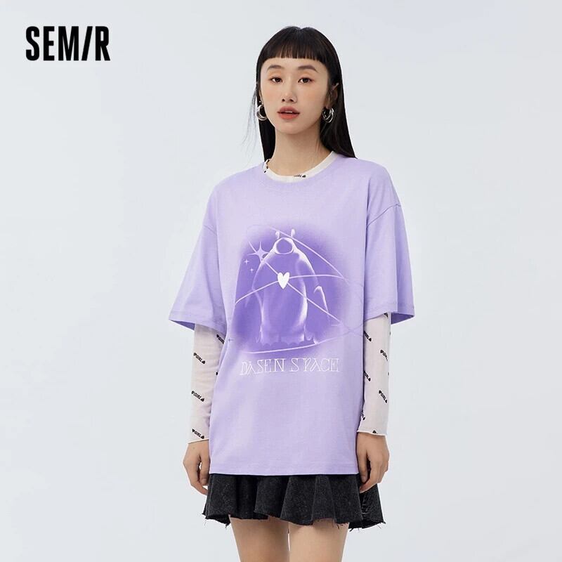 送料無料 Semir 半袖 Tシャツ女性中長綿 2023 春スタイルフライドストリートルーズプリントトップトレンド Tシャツ ショート ロング コットン ハーフスリーブ スプリング 春物 AE1212777796190058895