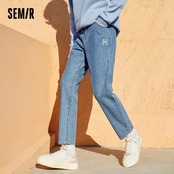 送料無料 Semir ジーンズ男性 2022 早春若者ハンサムルーズテーパードマンレトロスタイルデミンズボン レッド スプリング 春物 AE121277778235642945