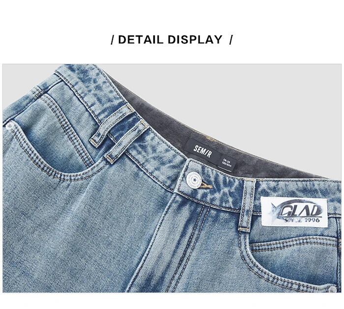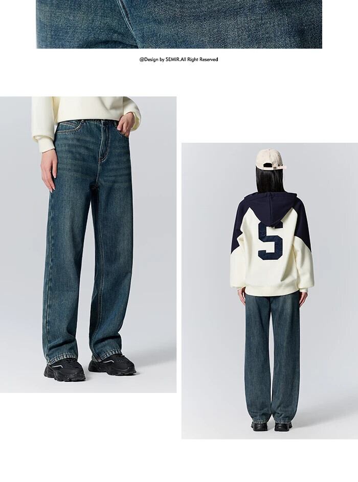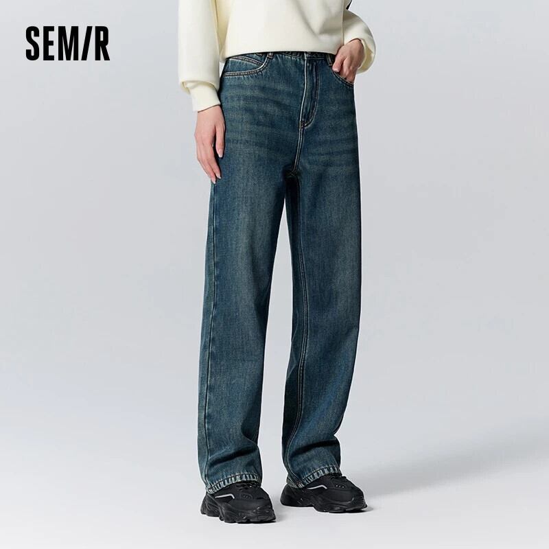 送料無料 Semir ジーンズ女性ルーズストレートパンツレトロトレンディクール冬 2023 ウォームプラスベルベット床モップパンツ ウィンター 冬物 AE121277774893383787