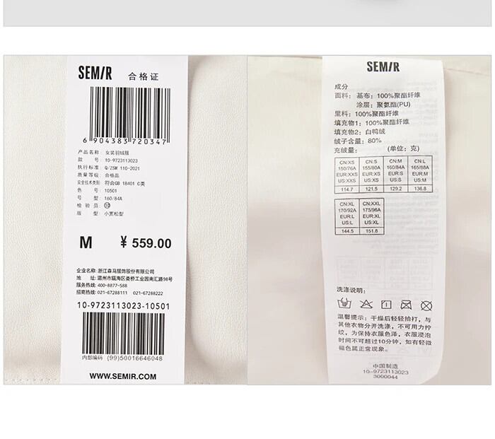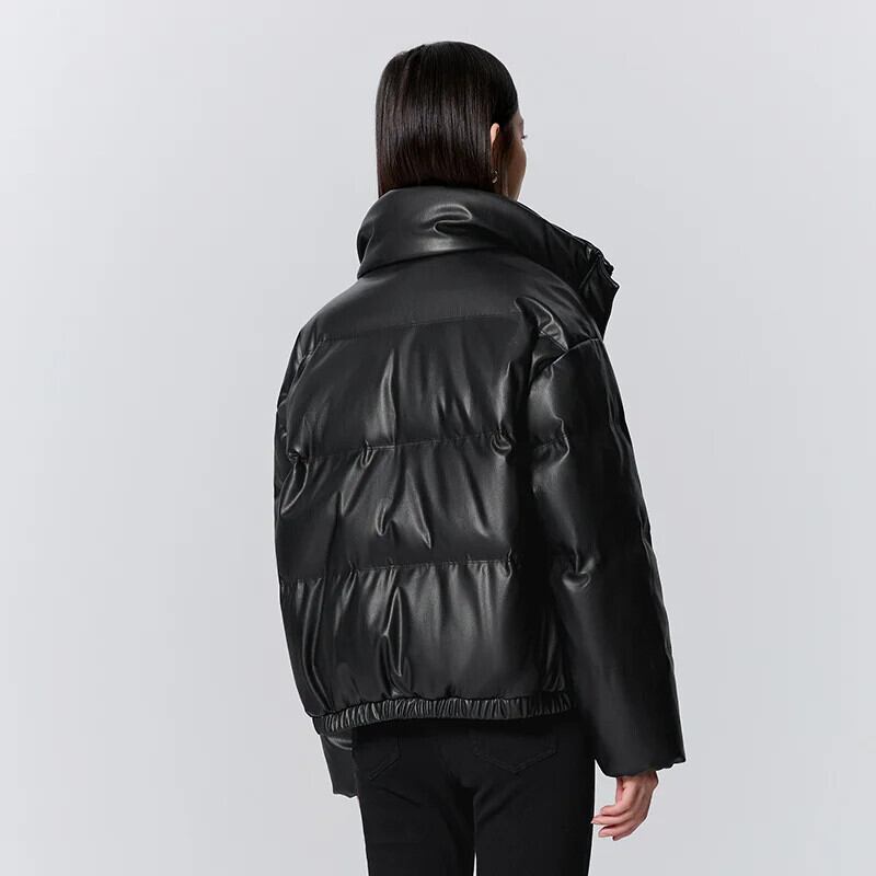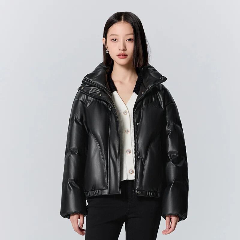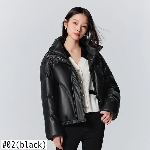 送料無料 Semir ダウンジャケット女性スタンドカラー小さなルーズシンプル 2023 冬トレンディクール PU 模造革パンジャケット ウィンター 冬物 レザー AE1212777773920970900