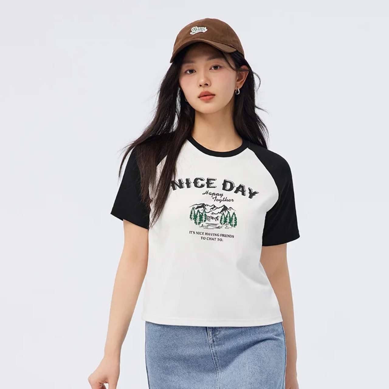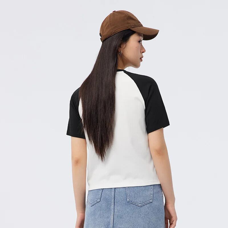 送料無料 Semir 半袖 Tシャツ女性刺繍 2023 夏コントラストカラーラグランスリーブプルオーバーレトロ レッド サマー 夏物 AE1212777773295943916