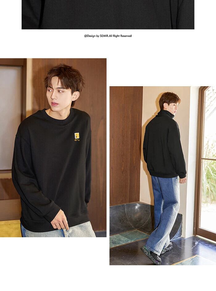 送料無料 Semir トレーナーメンズベルベット暖かいベルクロラウンドネック 2023 冬ルーズでスリムなインナーウェア ウィンター 冬物 Oネック AE1212777738155137890