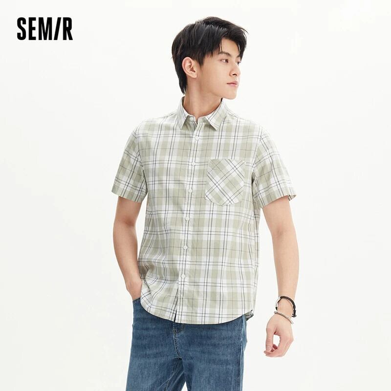送料無料 Semir 半袖シャツメンズベーシックコントラストチェック柄夏メンズラペルシャツ ショート ハーフスリーブ サマー 夏物 AE121277778793996346