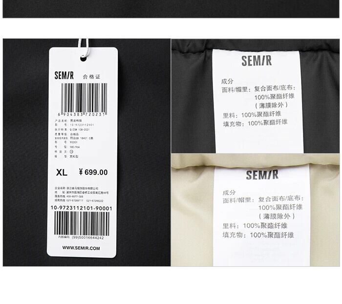 送料無料 Semir 綿メンズ 2023 冬ミッドレングス 3 プルーフ通気性トレンディクール暖かいルーズジャケット コットン ウィンター 冬物 AE1212777758848640121