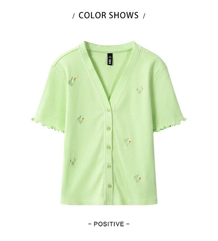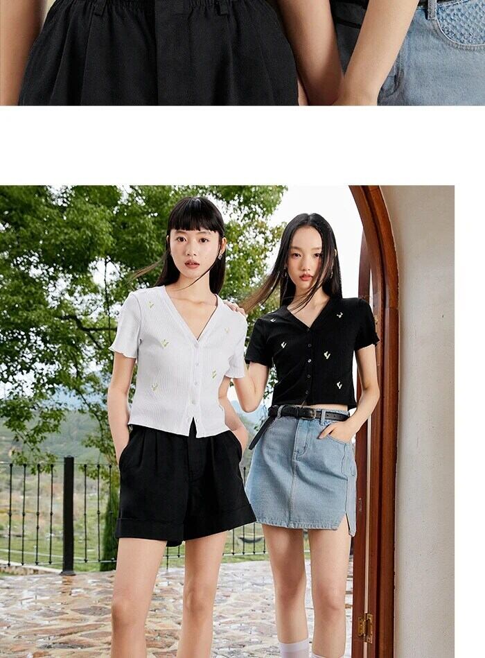 送料無料 Semir 半袖 Tシャツ女性ショートタイトな刺繍 2023 夏 V ネックニットカーディガンスタイル ハーフスリーブ サマー 夏物 Vネック AE1212777773964468696