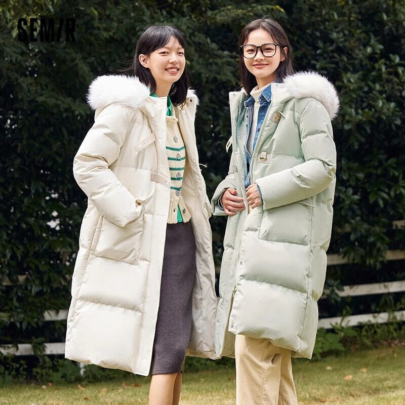 送料無料 Semir ダウンジャケット女性ロングルーズファー襟フード付き 2023 冬防風防雨厚いジャケット ウィンター 冬物 AE1212777722882375903