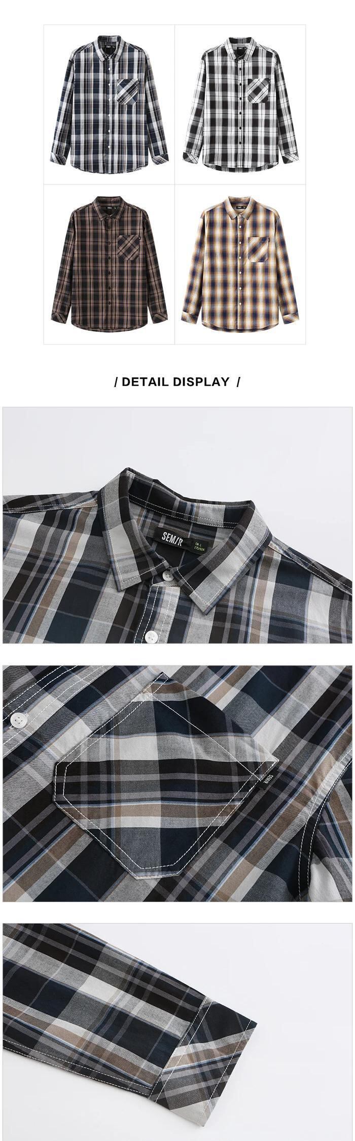送料無料 Semir メンズ シャツ 長袖シャツ 秋 Clic レトロ コットン グラデーション チェック柄 インナー トップ メンズ ロング オータム 秋物 AE1212777712647414410