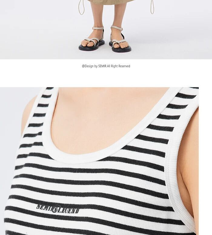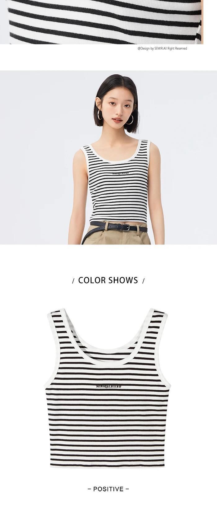 送料無料 Semir タンクトップ女性ショートフィット 2023 夏レターストライプクルーネックトップ多用途 サマー 夏物 AE1212777712058670422