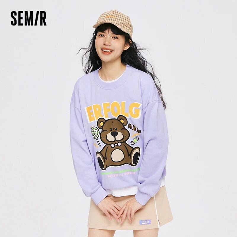 送料無料 Semir トレーナー女性ミッドレングスセンスベア 2022 秋ルーズプリントトップレトロトレンド オータム 秋物 AE1212777757562789947