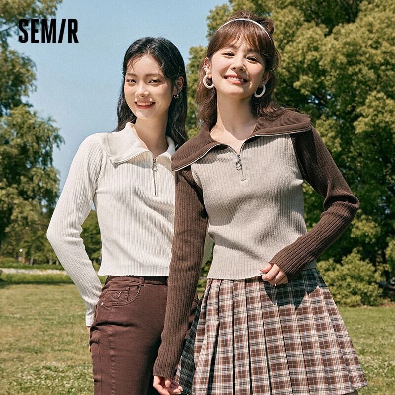 送料無料 Semir 2023 女性セーター秋ショート無地シンプルな薄型スリムセーターオールマッチ気質セーター女性 オータム 秋物 ソリッドカラー AE1212777770048479420