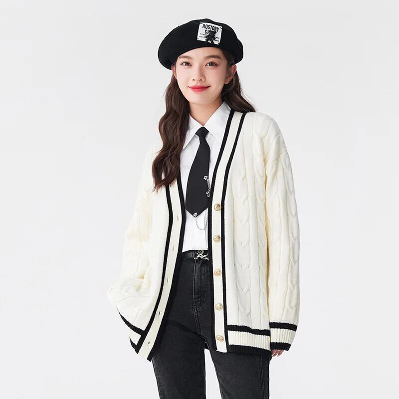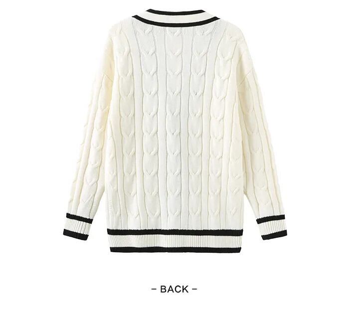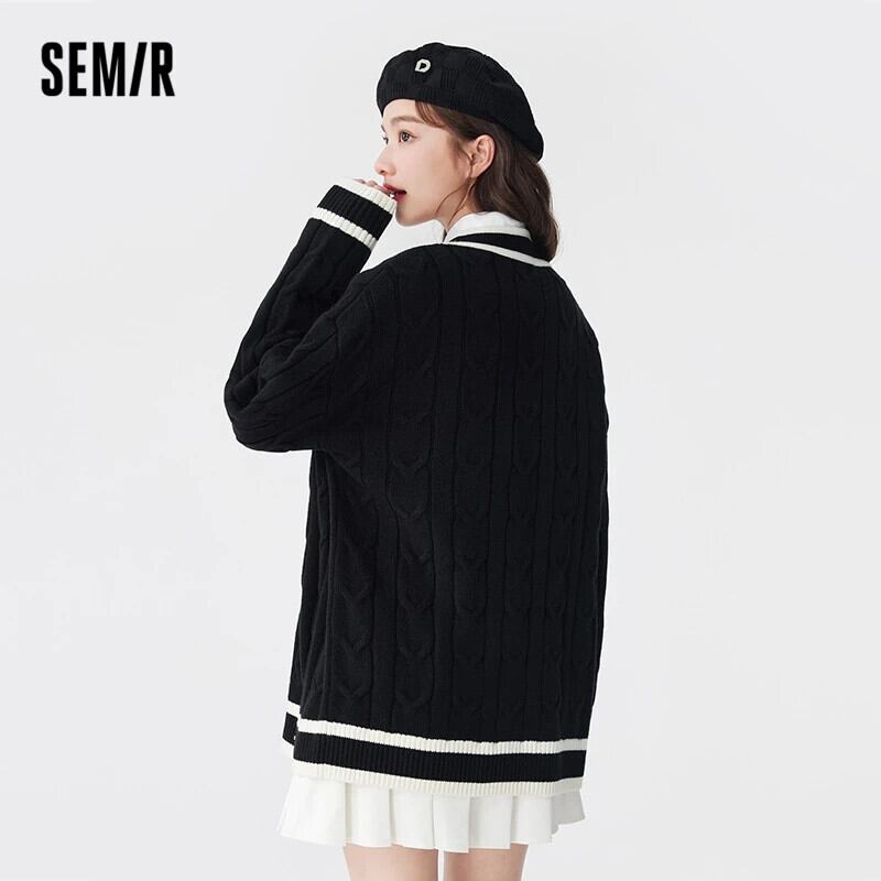 送料無料 Semir 女性ニットカーディガン秋ミッドレングス V ネックコントラストカラー気質トップルーズケーブルセーター女性 オータム 秋物 Vネック AE121277778728875318