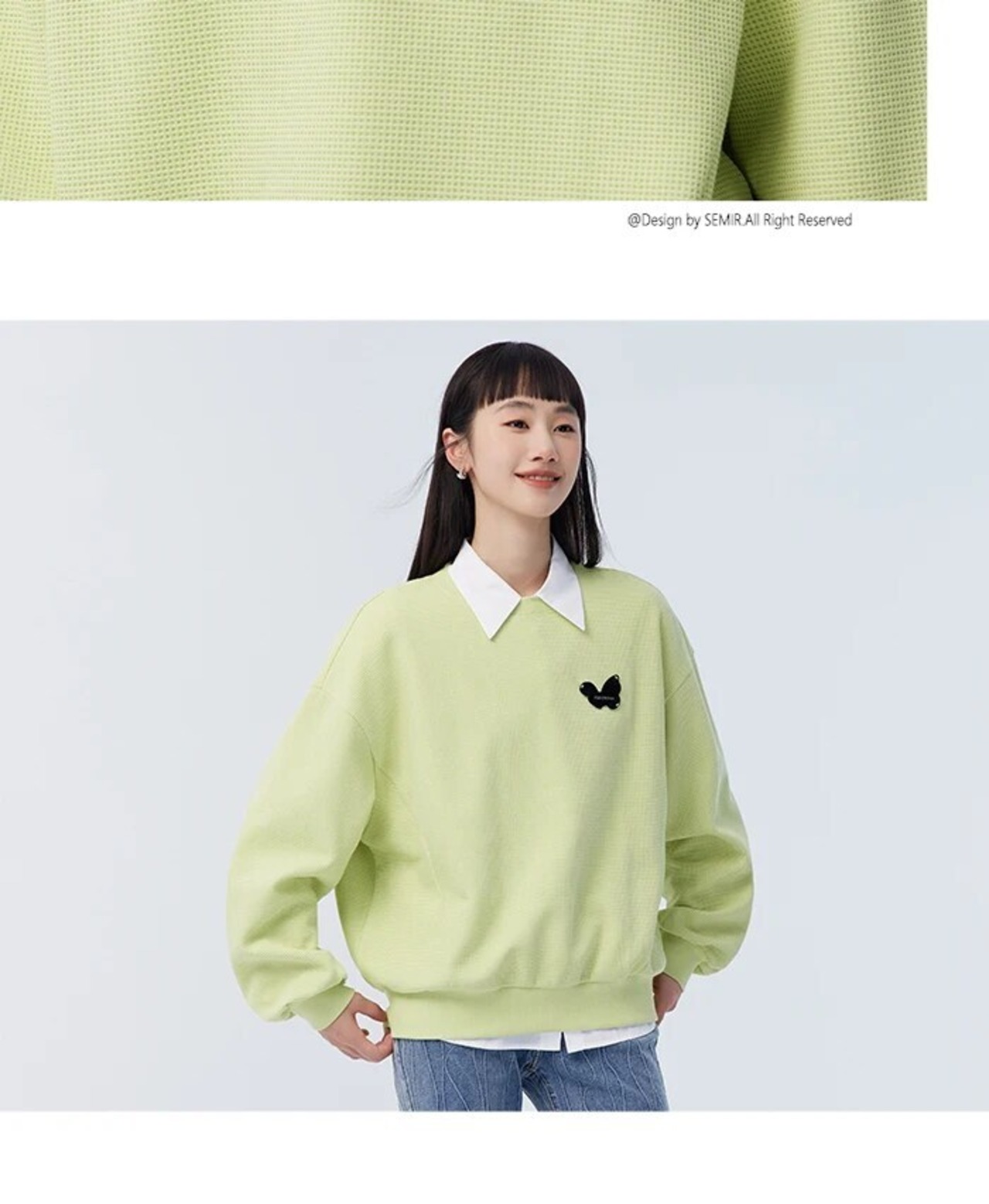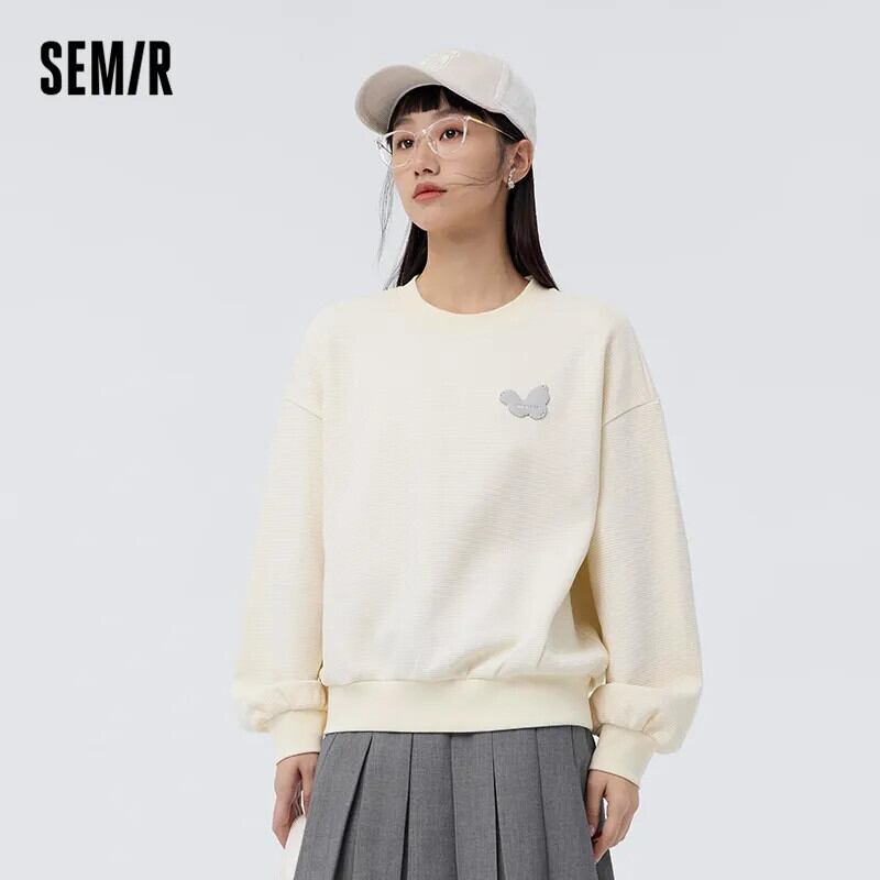 送料無料 Semir トレーナー女性ワッフルオーバーサイズシンプル多用途 2023 春バタフライボトムパーカー スプリング 春物 AE1212777781790045823