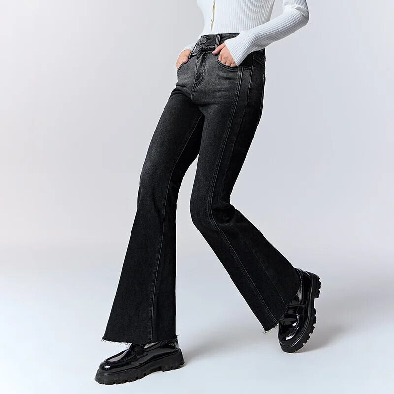 送料無料 Semir ジーンズ女性ウエストグラデーション生エッジフリースパンツ 2023 冬フレアパンツ レッド ウィンター 冬物 AE1212777752715354448