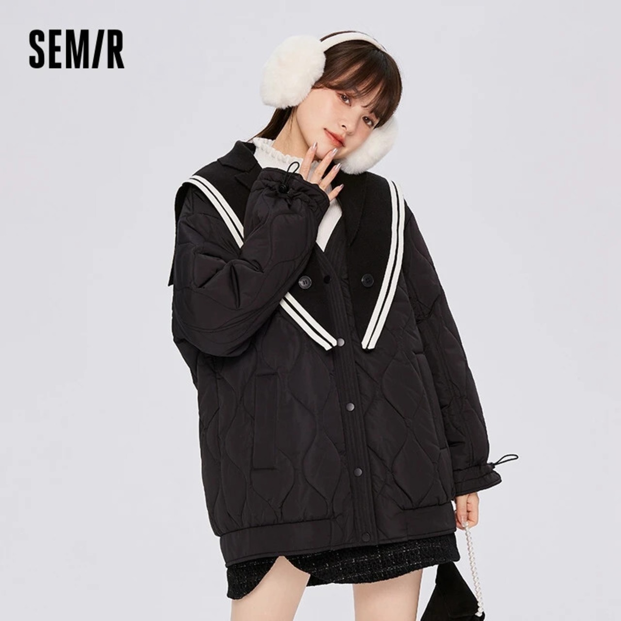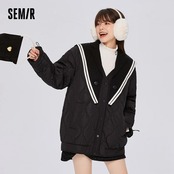 送料無料 Semir コットンコート女性ミッドレングスネイビーカラートレンディ 2023 冬黒ルーズ厚手コットンジャケット ブラック ウィンター 冬物 AE1212777757481651280