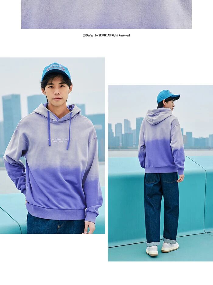 送料無料 Semir トレーナーメンズ 2023 ルーズフード付き文字刺繍春グラデーショントレーナー スプリング 春物 AE1212777762046498392