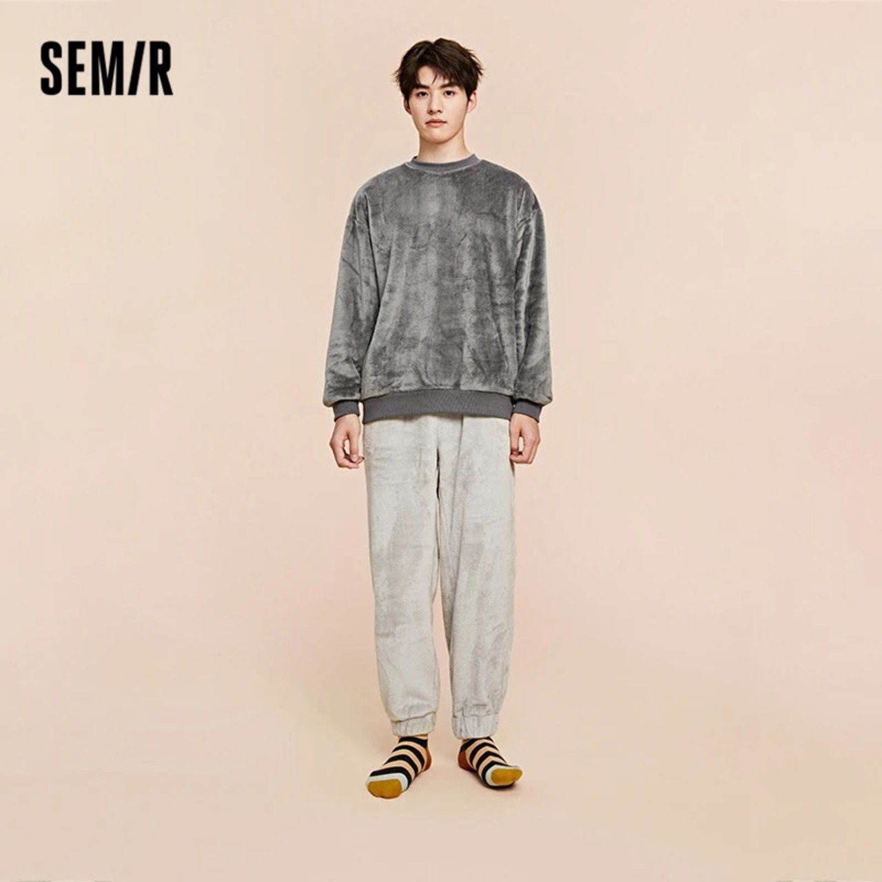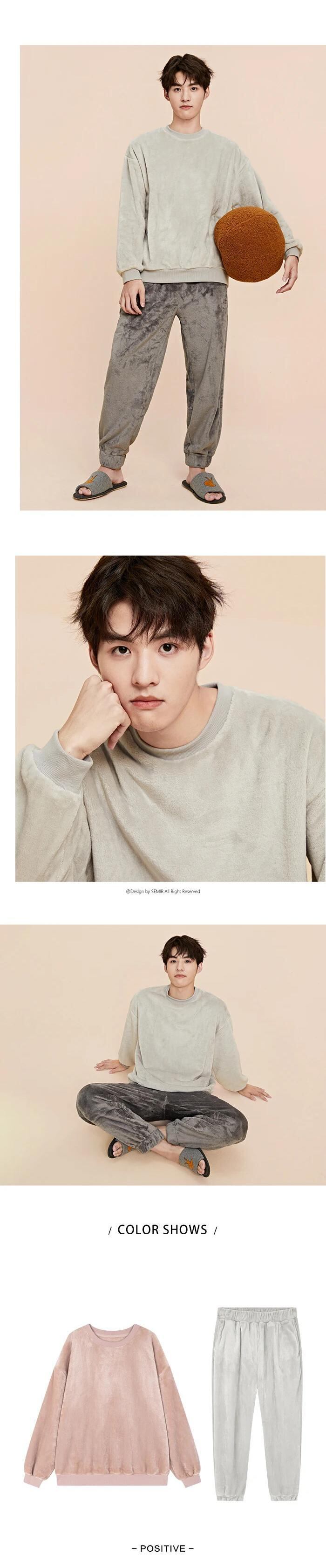 送料無料 Semir 生き抜く家着スーツメンズルーズフランネルぬいぐるみ肥厚コントラストカラー長袖ズボン愛好家のパジャマ女性 ロング AE1212777714193550347