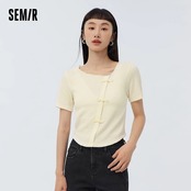 送料無料 Semir 長袖 Tシャツ女性ショートスリム甘くてクールなリトルマン 2023 春国家スタイルボタンテクスチャトップ ロング 大人ガーリー スウィート キュート カジュアル スプリング 春物 AE1212777772533803826