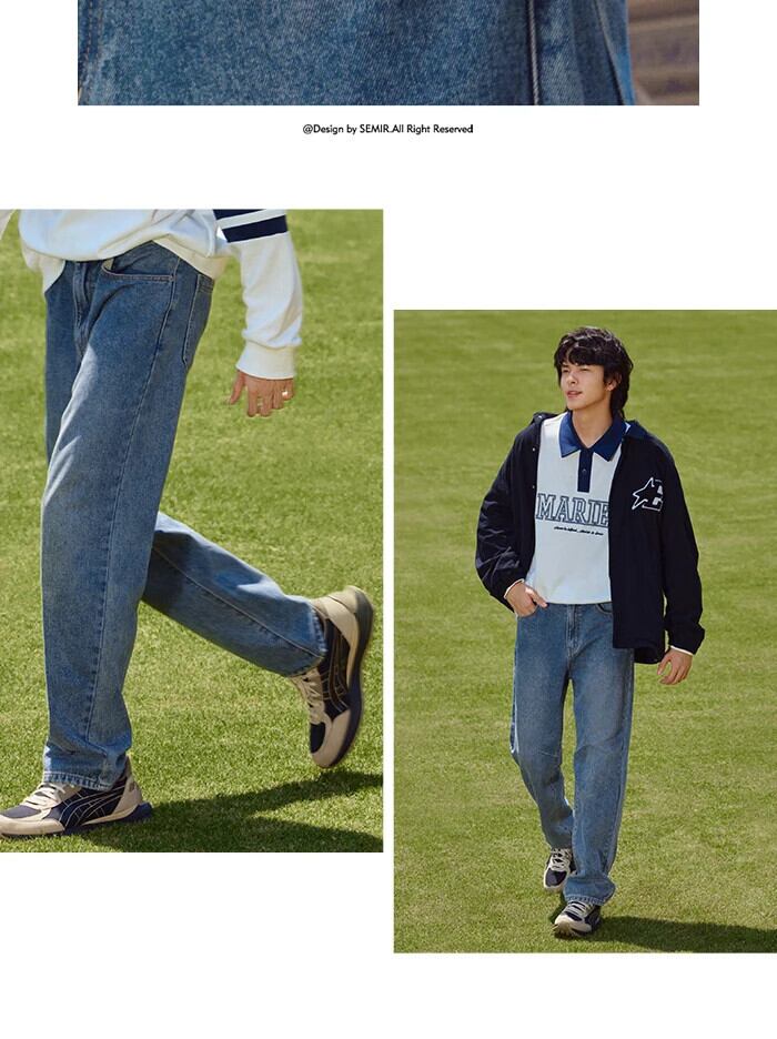 送料無料 Semir ジーンズ男性 2023 秋と冬ピュアコットン起毛 Comtable トレンディなルーズストレートパンツ オータム 秋物 ウィンター 冬物 AE121277772275027363