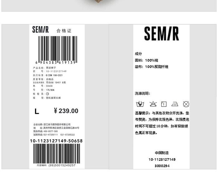 送料無料 Semir パンツ メンズ 2023 春 デイリー シンプル 通勤 スタイル レギンス ズボン スプリング 春物 AE1212777751072601429